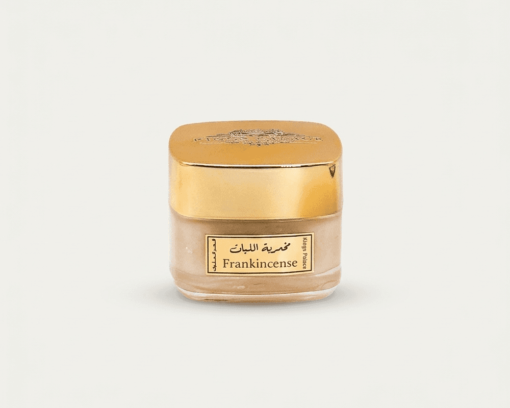 Frankincense Mukhmaria made with white musk, jojoba oil, vitamin E, and essential oils of Hojari frankincense to even out skin tone, reduce dark spots, and leave the skin radiant, delicately scented, and softer