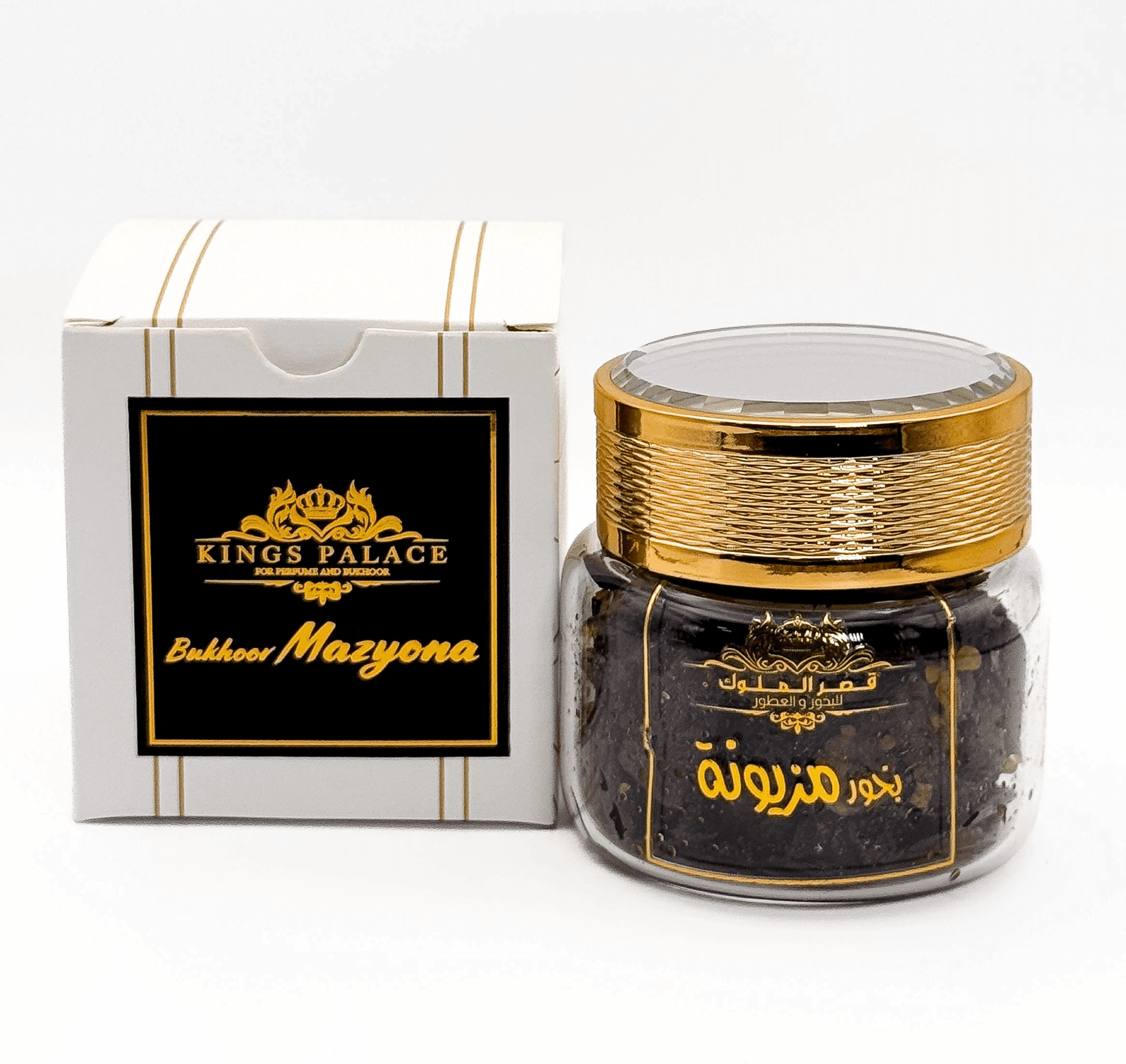 Let the fragrance of Mazyona Bakhoor take you on a journey of calm and sophistication.